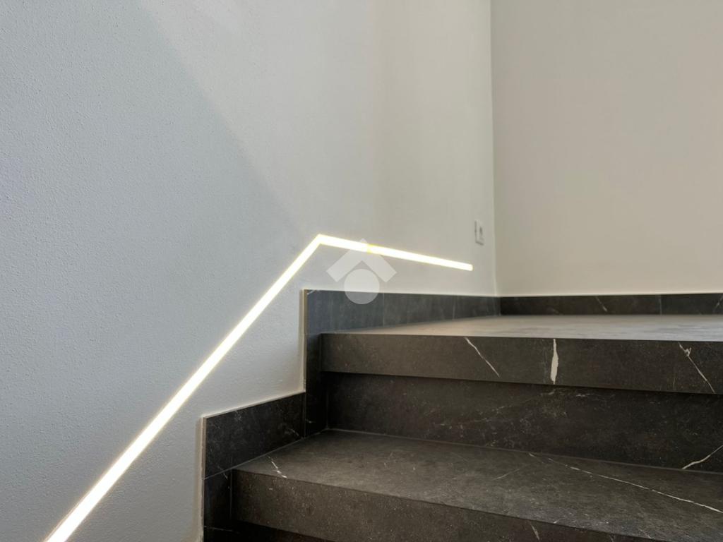 Salendo al primo piano tramite scale dotate di illuminazione Led a filo, si trovano due camere matrimoniali, una delle quali è dotata di un balconcino privato. Completa questo piano il secondo bagno, anch'esso finestrato e provvisto di doccia.